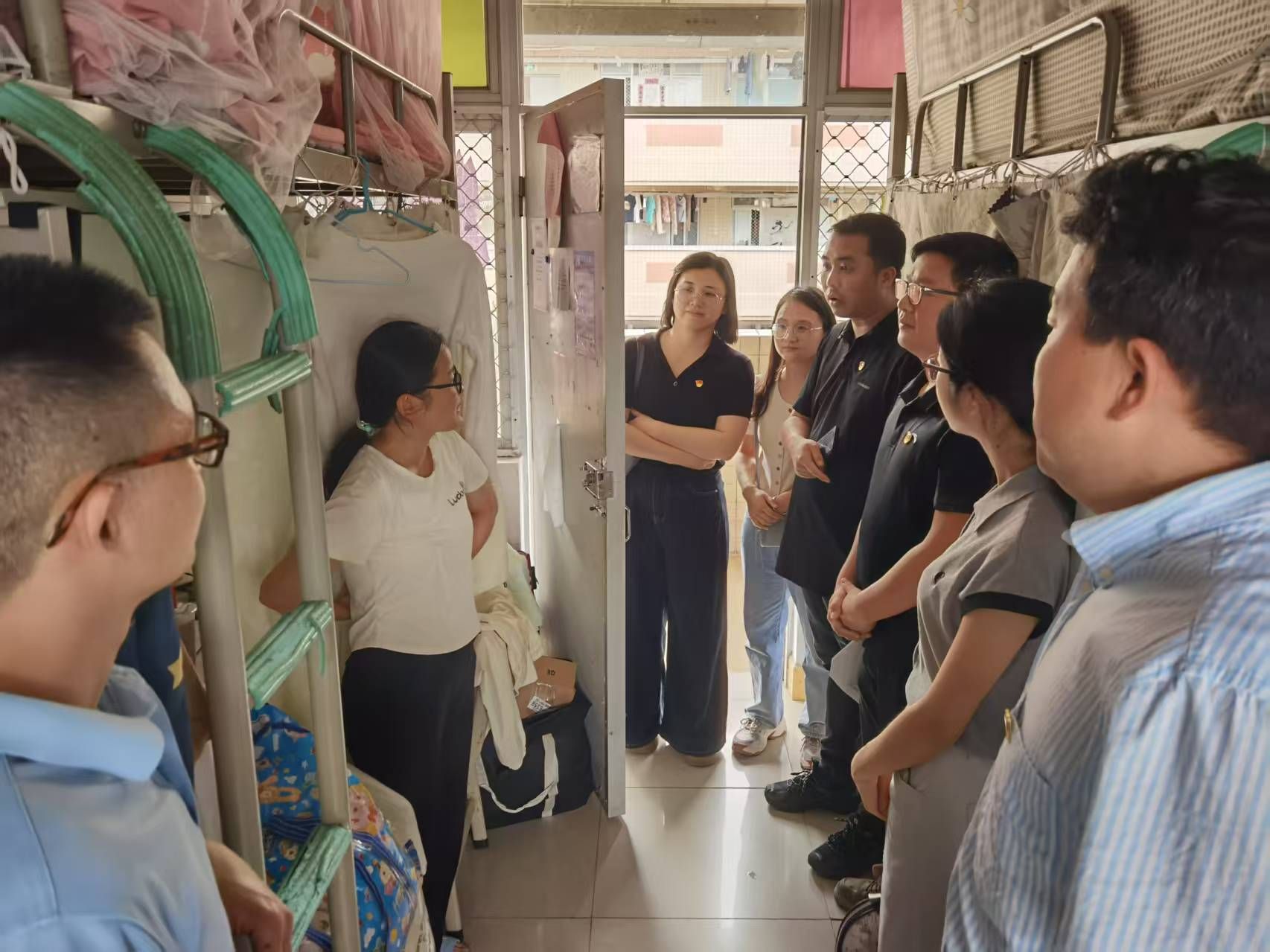 在走访过程中,党员教师们深入员工宿舍,与毕业生进行亲切交谈。老师们重点关注员工的学业完成情况,详细询问毕业论文(设计)的撰写进度、实习收获,并针对论文、实习中存在的问题进行温馨提示。