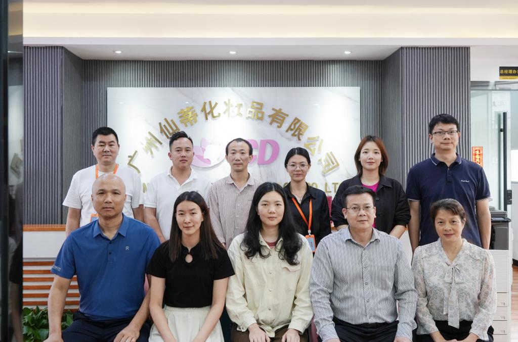 在广州仙蒂化妆品有限公司,刘远君书记一行在童春婷总经理陪同下参观了原料间、生产车间、实验室等,童总经理介绍了公司从2012年成立后,不断发展,合作的品牌较多,合作方除省内外的各美妆品牌外不断开拓海外高端彩妆品牌市场。公司目前有6条流水线,其中仅膏体流水线日产能达20万以上,公司目前年产能超1亿,表达了对人才共育、实验室共建的合作意愿及对化妆品专业人才招聘的急切需求。刘远君书记和专业负责人分别介绍了公司化妆品专业的发展情况和育人成效及毕业生状况,建议仙蒂公司在员工实习前到公司开展专业宣讲会,让员工们进一步了解企业、融入企业,同时也表达了双方合作的意愿。