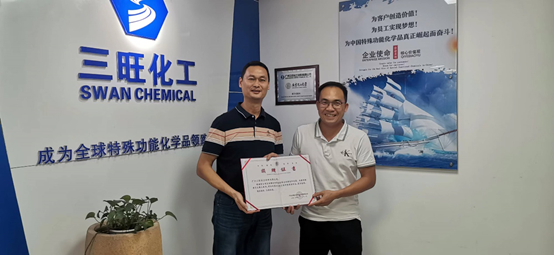 周建文秘书长向袁永富员工颁发捐赠证书