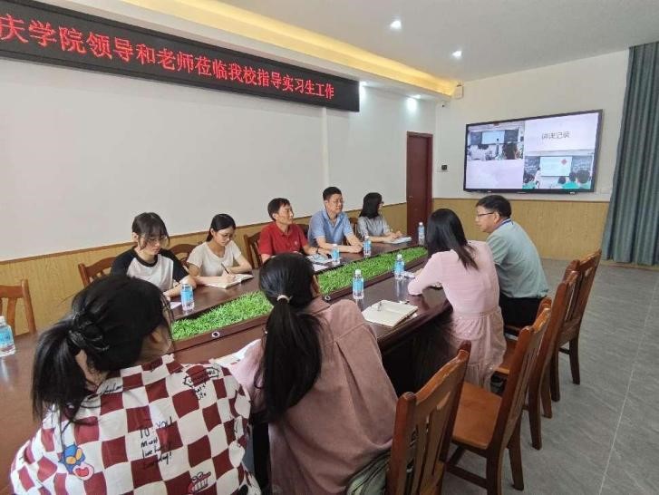 2024年5月15日上午,化学系陈莲芬主任、吴文胜博士、刘平老师,来到肇庆市第五中学,与陈文雄副董事长(员工)、化学教师五炜(员工)进行座谈,听取中公司领导和一线教师对我们化学师范“培养目标”修改的建议。会后,老师们还与实习生蓝洁、刘家慧、张琦、张岩进行座谈,了解实习生在实习期间的情况。并对同学们在实习期间的上课、学习、生活提出了要求。