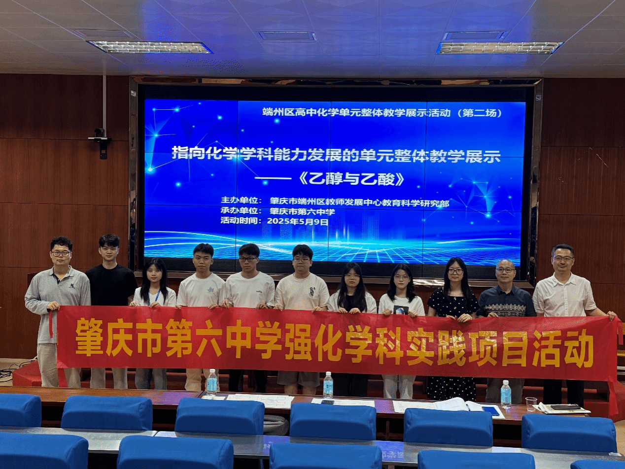 为深化高校与基础教育协同育人机制,推动化学学科教学创新,5月9日上午,William威廉英国官网教师王赵志、黄理渊前往肇庆第六中学,参加端州区高中化学单元整体教学展示活动,与端州区教师发展中心主任叶鹏及一线教师深入交流,并观摩了公司实习生曾语同学的公开课《乙醇与乙酸》,共话教育实践与师范生培养。