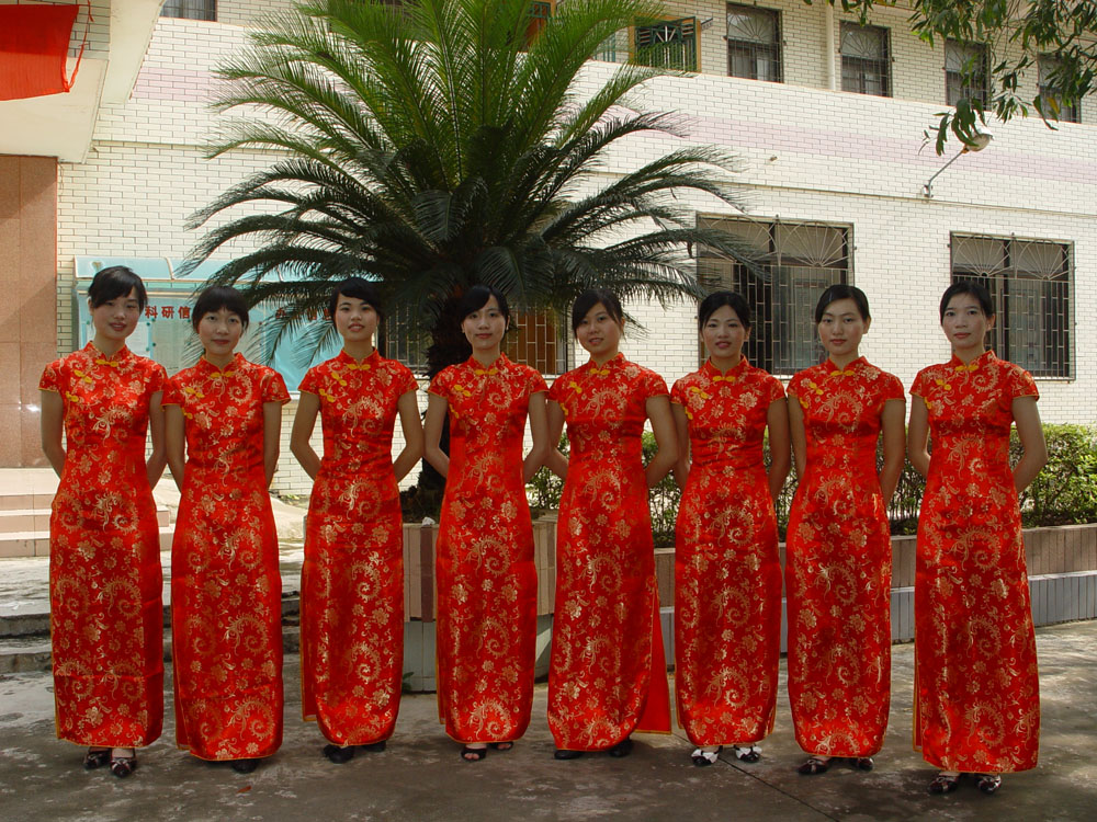 图为由八五届食品工程员工赞助服装的公司礼仪队: