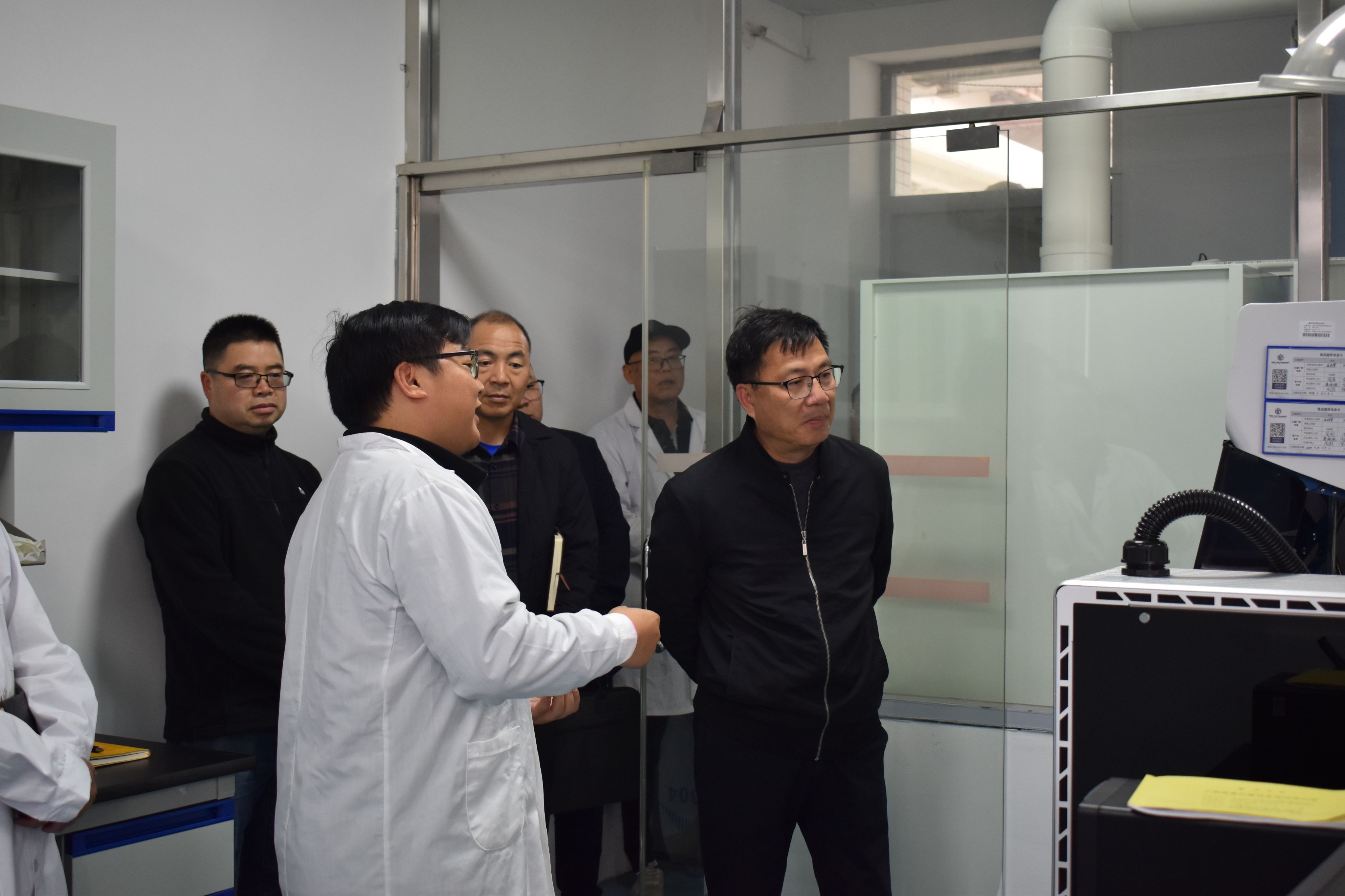 谢冠华一行首先实地考察了危险化学品仓库及大型仪器共享平台,重点了解实验室安全管理机制、大型仪器设备使用维护及开放共享情况。对公司在实验室标准化建设方面取得的成效给予充分肯定,强调要持续加强安全责任体系建设。