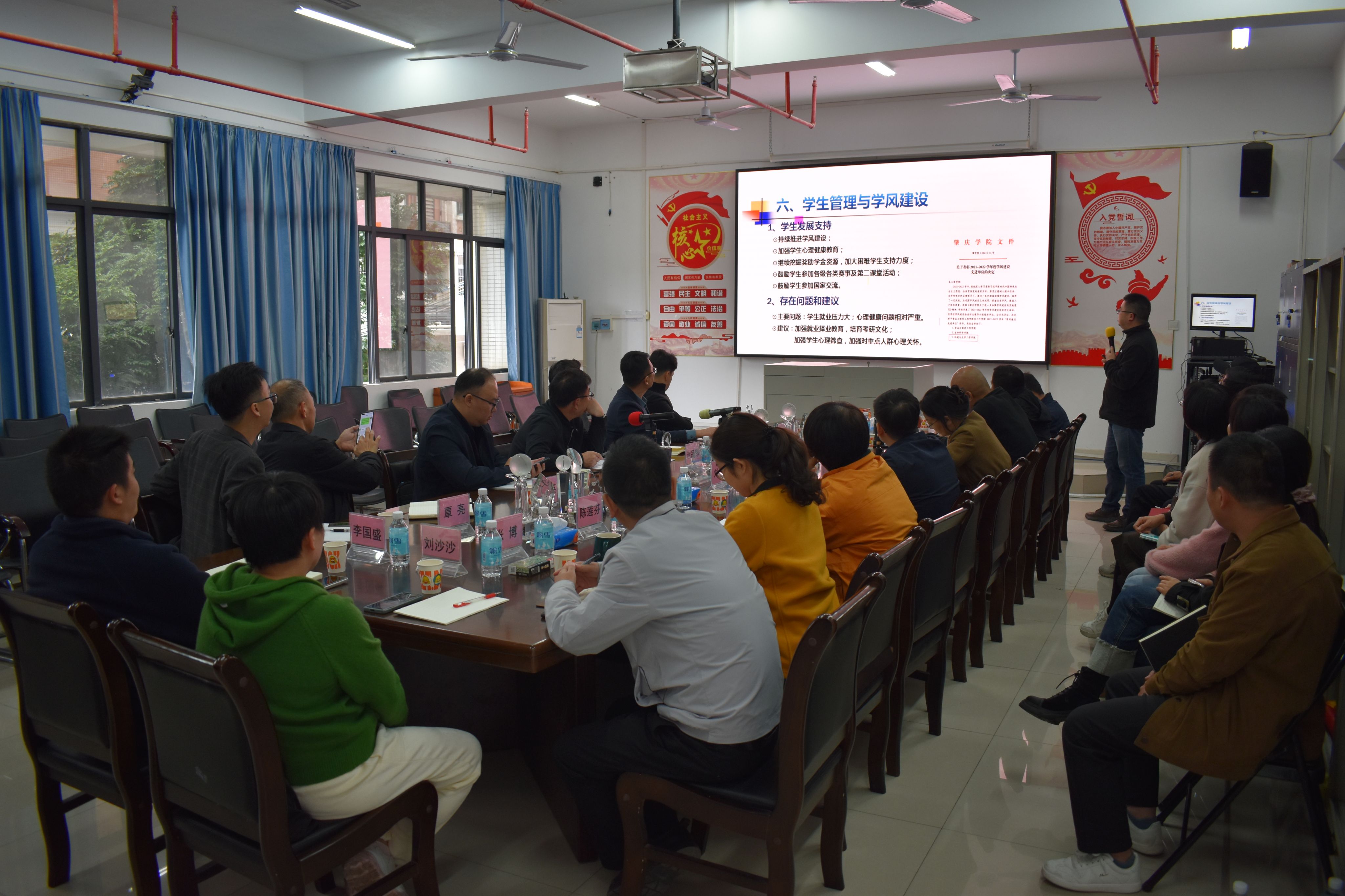 在专题座谈会上,经理李湘代表公司汇报了党建思政、团队建设、科学研究、人才培养等七大领域的建设成效,深入剖析当前制约公司发展的关键问题,并提出"人才强院、科教兴院、质量立院、文化育院"的攻坚路径。与会教师代表结合工作实际,围绕“专业建设、科学研究、实验室建设、人才服务、激励体制”等方面积极建言献策。相关职能部门负责人现场回应关切,就资源配置、机制创新等提出具体支持举措。