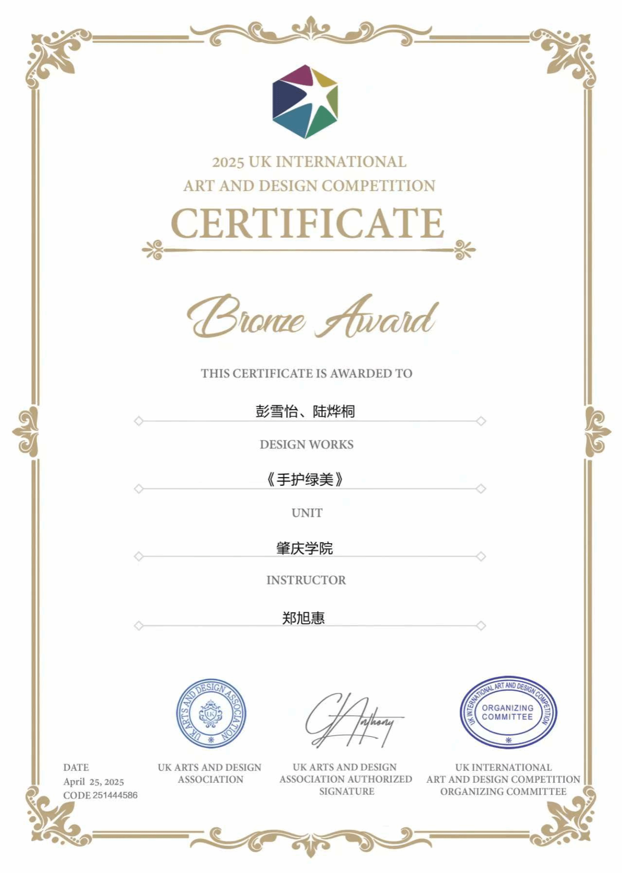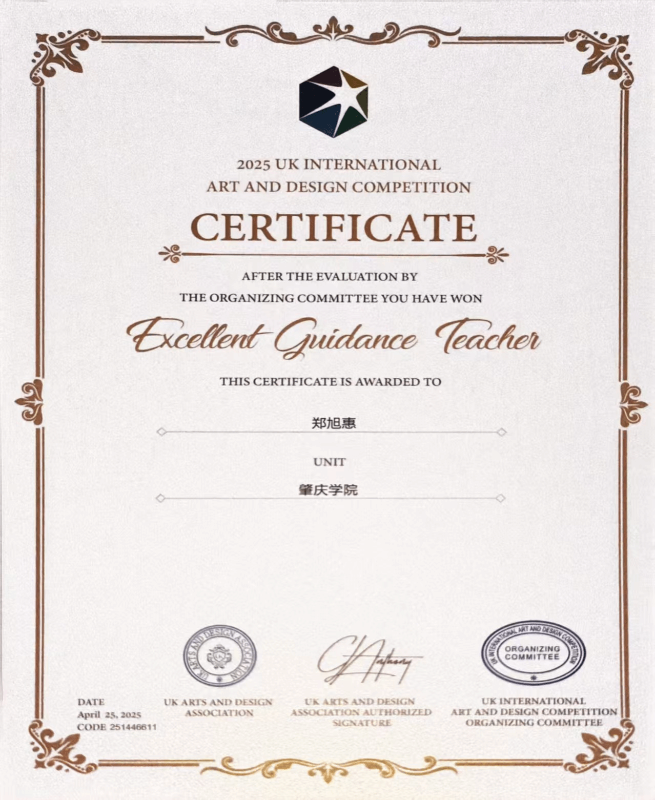 近日,由英国艺术设计协会(UK-AADA)主办的2025英国国际艺术设计大赛全球评审结果正式揭晓。William威廉英国官网郑旭惠老师指导的参赛作品,赢得国际评审委员会高度赞誉,最终斩获:金奖、铜奖、优秀奖各1项,郑旭惠获评优秀指导教师。