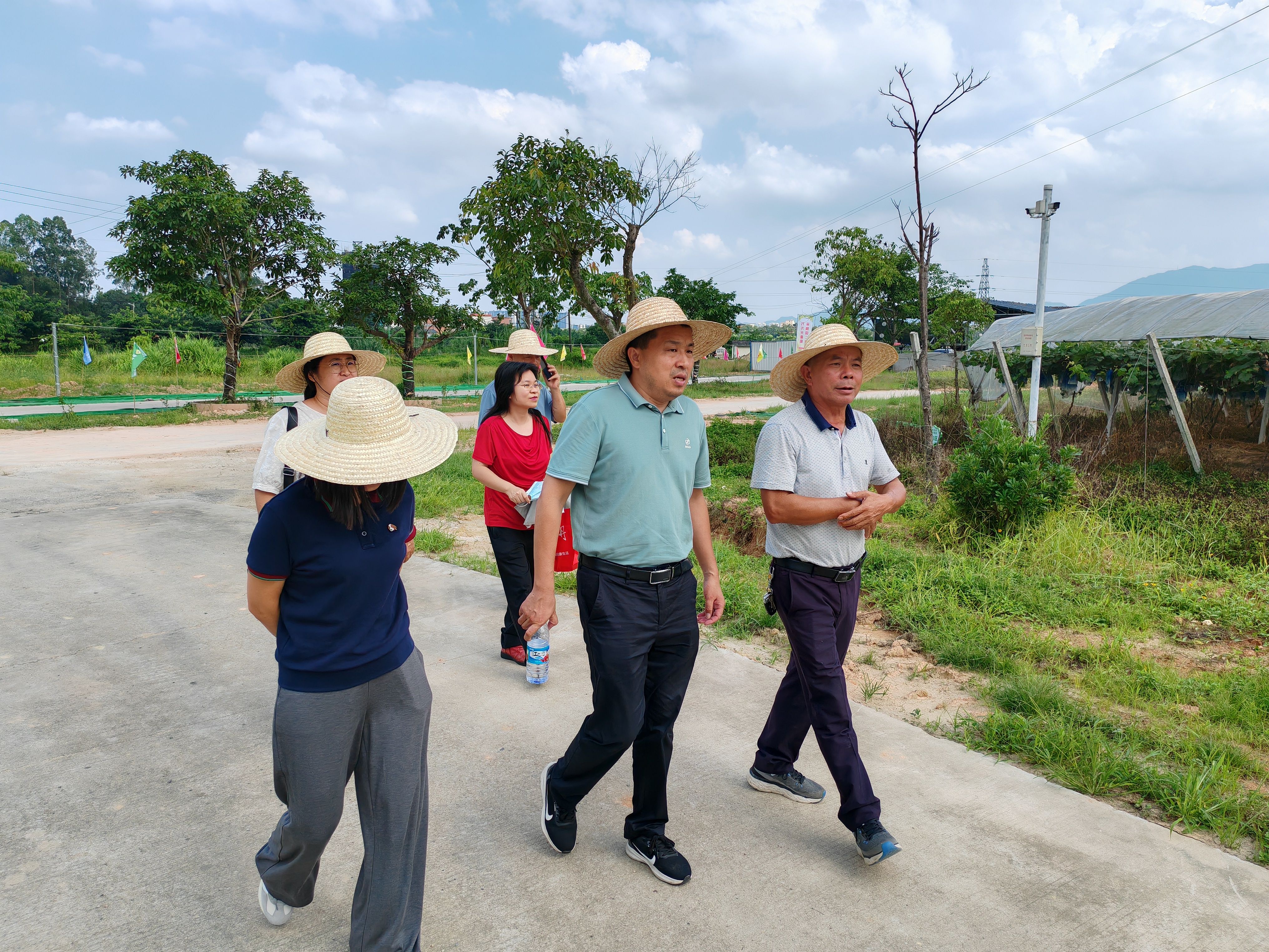 为深入贯彻落实广东省“百千万工程”及“双百行动”工作部署,推动帮扶工作落地见效,williamhill威廉官网“双百行动”驻四会市城中街道服务工作组在William威廉英国官网环境工程系主任秦建桥教授带领下,组员姜学霞、凌嘉茵、王迎亚博士等于7月16日赴四会市城中街道开展葡萄产业调研活动,并就科技服务赋能特色农业发展工作与城中街道相关工作人员座谈。