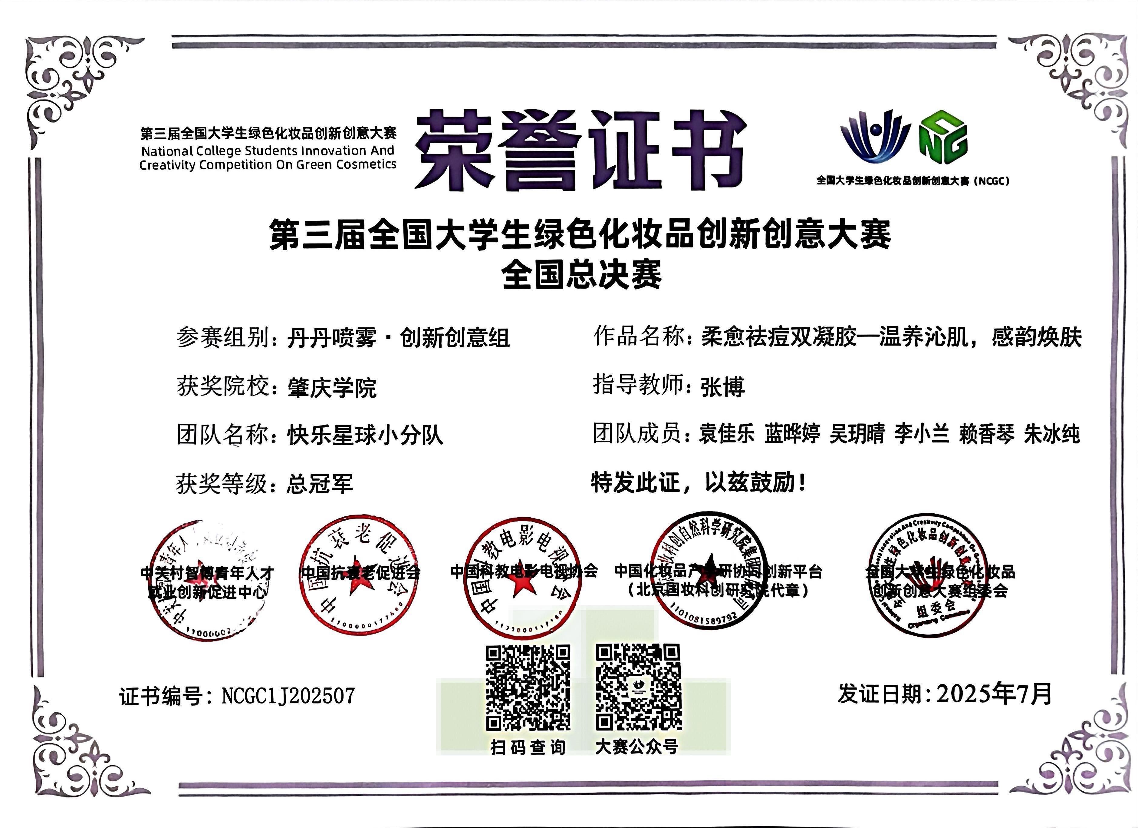 William威廉英国官网一直以来都高度重视应用型人才培养,本次大赛佳绩既是公司深入推进“以赛促学、以赛促教、以赛促建”的成果体现,也是对化妆品技术与工程专业持续强化课程建设、夯实实践教学的高度认可。公司将继续鼓励师生参与高水平学科竞赛,不断拓展专业视野与社会影响力。