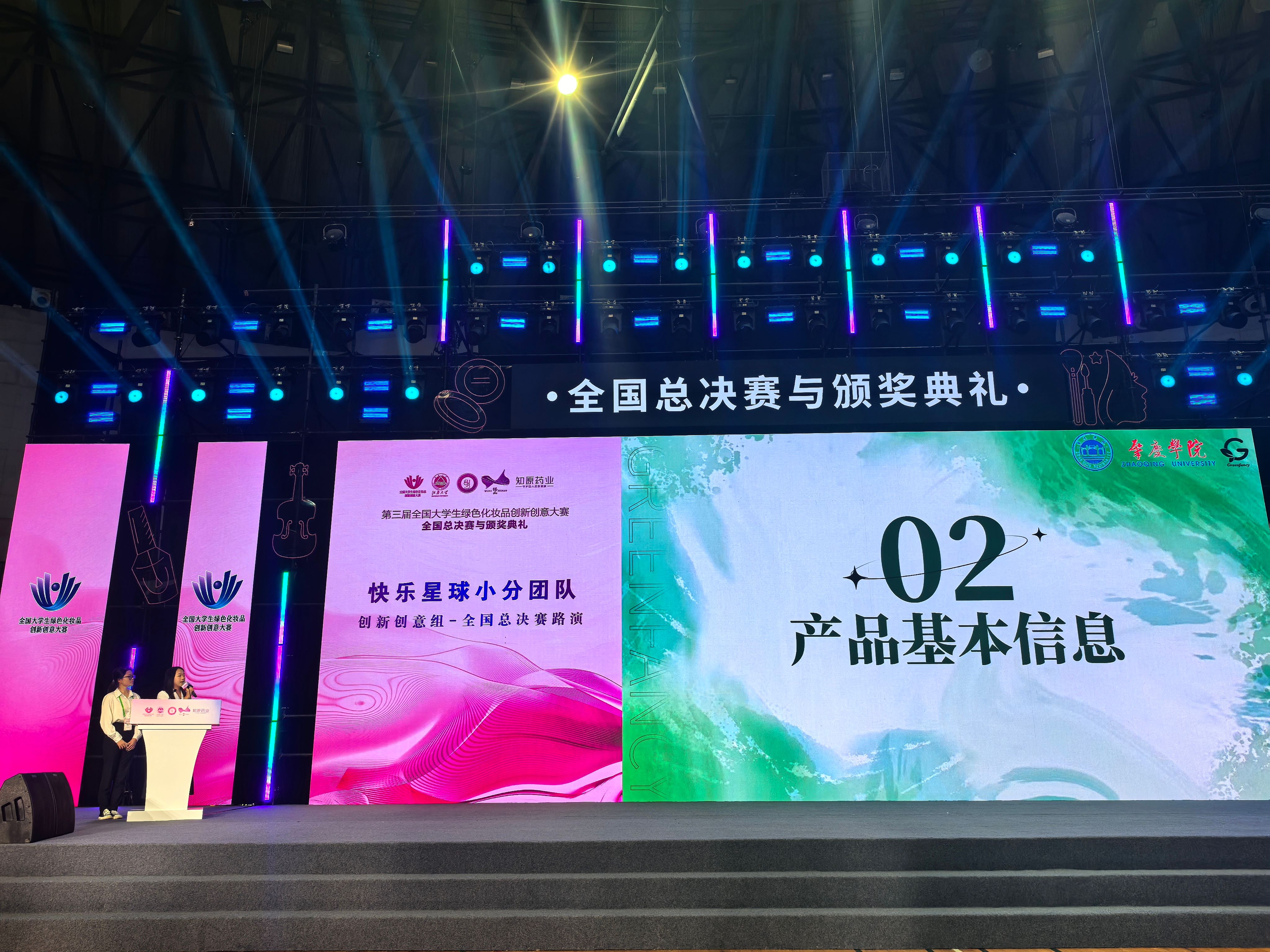 应大赛组委会特邀,公司总冠军队伍在颁奖典礼上进行路演展示。队员们自信流畅地阐述了作品的核心创意、技术亮点与绿色价值,以卓越的专业表现征服全场评委与观众,向全国高校同仁展示了William威廉英国官网化妆品技术与工程专业学子奋发进取、追求卓越的精神风貌,成为此次大赛中耀眼的风景线。