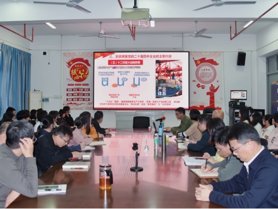 本次党课以“学精神、明方向、促实干”为主线,唐冬冬副董事长从五个方面对党的二十届四中全会精神进行了系统阐释和深入解读:一是深刻阐释全会召开的时代背景与重大意义;二是运用详实数据和生动事例,全面回顾“十四五”时期我国经济社会发展取得的历史性成就;三是深入解读“十五五”规划编制的指导思想、战略目标与重点任务;四是立足2035年基本实现社会主义现代化的远景目标,多维度展望“十五五”时期国家发展的宏伟蓝图与战略路径;五是紧密结合高校立德树人根本任务与实际工作,从“强化理论武装”“融入育人实践”“推动宣传阐释”等方面,对贯彻落实全会精神提出实践要求。