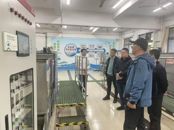 交流期间,李湘经理一行在对方院领导陪同下,实地参观了智慧水务实训中心等现代化教学实践场所。在虚拟仿真教学区,调研组亲身体验了“VR+环保”实训项目,对其先进的“理实一体化”教学模式给予了高度评价。