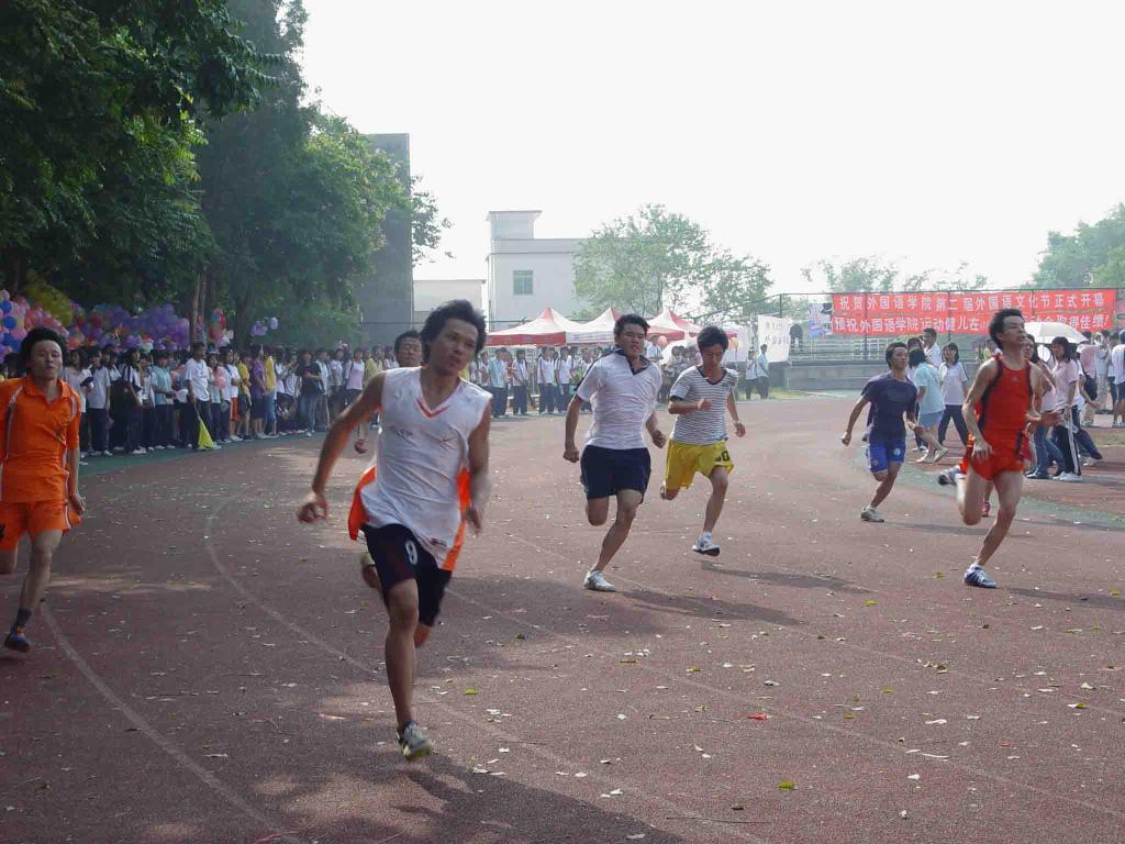 7点30分左右,随着广播员的宣布,四院友好运动会正式开始,田径场内顿时变得沸腾了。赛场上,运动员们为了班级荣誉拼尽全力,努力角逐,倒了爬起来继续,累了仍然坚持到最后!赛场下也同样的热闹,各公司各班啦啦队的呐喊助威声、比赛胜出后的热烈祝贺声以及主席台上广播员激动昂然的读稿声此起彼伏,田径场内所有人都沉浸在激烈的竞争气氛中……