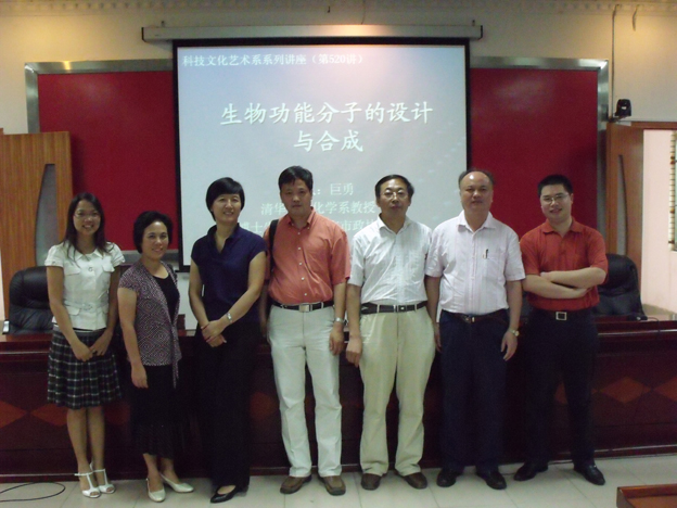 公司有幸邀请到清华大学化学系博士导师兼北京市政协常委巨勇教授前来公司,作题为“生物功能分子的设计与合成”的学术报告。6月21日下午,行政楼第二会议室座无虚席。公司经理郭海福、党委书记练家华、党委副书记陈玉华,以及公司精细化工系及化学系的全体老师等参加了这次讲座。据悉,参加此次讲座的师生共两百多名。