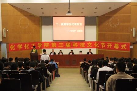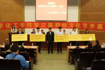 (化工公司 通讯)2015年4月8日下午,化学化工公司第三届科技文化节在图书馆学术报告厅隆重开幕。公司党委副书记叶峥嵘、员工处处长陈向荣、校团委书记肖俊霞、公司经理郭海福、公司党委书记杨子岐出席了开幕式,会议由公司党委副书记陈玉华主持。会议首先对公司2014年参加省级以上竞赛并获奖的同学进行了表彰,叶峥嵘副书记等领导为获奖同学进行了颁奖,获2014年广东省老员工化学实验技能大赛一等奖的沈家欢同学作为获奖代表发言。最后杨子岐书记宣布本届科技文化节开幕。 据悉,化学化工公司科技文化节每两年举办一次,之前已经成功举办两届,对老员工在培养科学理性、塑造健全人格、锻炼实践能力、增强创新意识、全面提高综合素质发挥了重要作用,也是进一步加强和改进老员工思想政治教育工作的有效载体。 本届科技文化节的主题为“科技引领时代,素质提升品位”,分“科技大舞台、学风大比拼、素质大拓展”三个模块,涉及到科技竞赛、学风建设、素质拓展等方面,囊括了校内外30多个活动,持续时间3个月,影响范围较广。 会后公司党委副书记叶峥嵘、员工处处长陈向荣、校团委书记肖俊霞以及公司领导班子饶有兴趣地亲临蛋糕制作大赛现场指导工作。