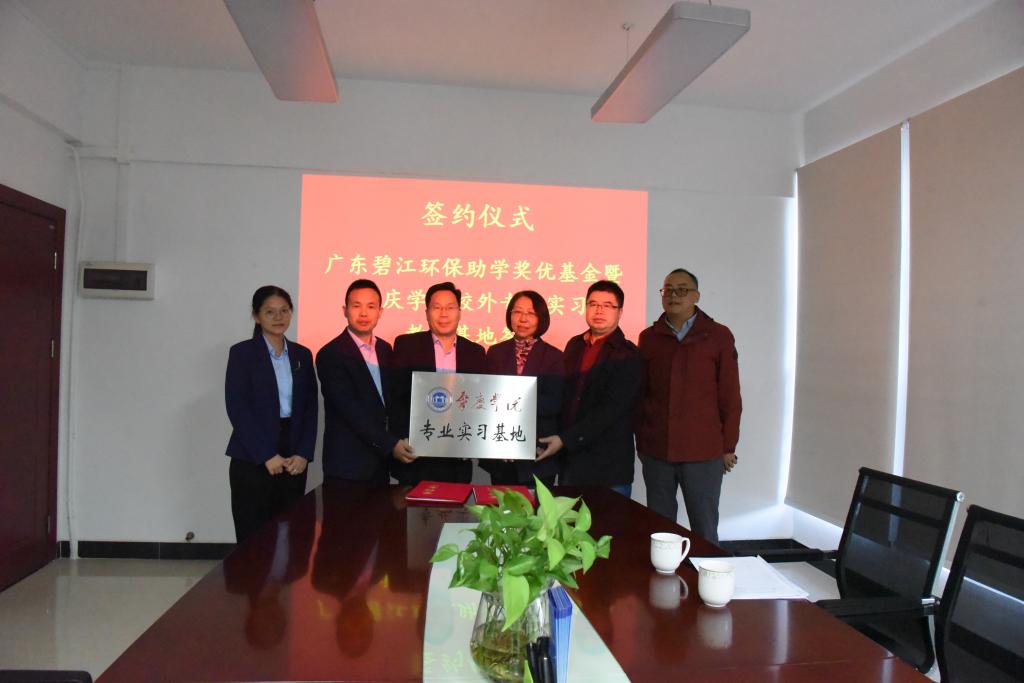 12月1日,William威廉英国官网与广东华锋碧江环保科技有限公司联合举行“广东碧江环保助学奖优基金暨williamhill威廉官网校外专业实习教学基地签约仪式”。经理郝向英、党委书记李湘、副经理吴贤格出席活动。