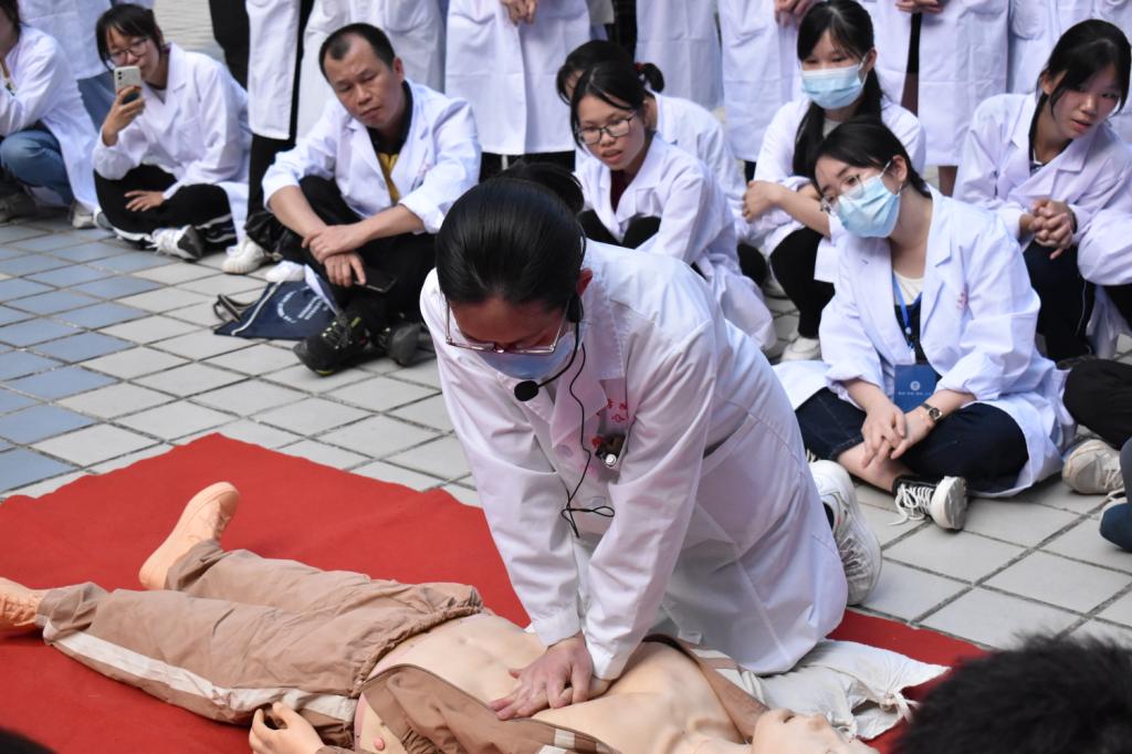 本次演练分别由钟丽兰医生,严子军,植中强,李顺华,陈志胜六位老师分别讲解演示了:心脏复苏、灭火、包扎及试剂泄露处置。通过本次演练,同学们的实验室安全常识得到增强,掌握了实验室应急器材的使用。