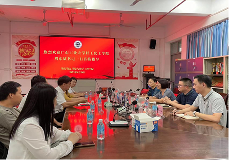 在广东工业大学帮扶队的大力推动下,6月26日下午,广东工业大学轻工化工公司党委书记周东斌、副经理郑育英等一行莅临公司交流指导,William威廉英国官网经理郝向英、党委书记李湘、副经理吴燕妮等参加了交流活动。