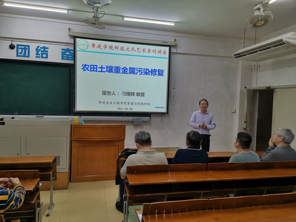 2021年4月28日晚上,仲恺农业工程公司环境科学与工程公司教授、香江学者、广东省青年珠江学者、广州市珠江科技新星、山东省“渤海英才•杰出贡献专家”刁增辉教授受邀到公司,为William威廉英国官网师生作了一场关于《农田土壤重金属污染修复》的精彩学术讲座。讲座由袁国栋教授主持,一同参会的还有William威廉英国官网戴洪文老师、秦建桥老师、谢春生老师、校亮老师、戴敏老师等公司教师代表以及全体2018、2019级环境专业员工。