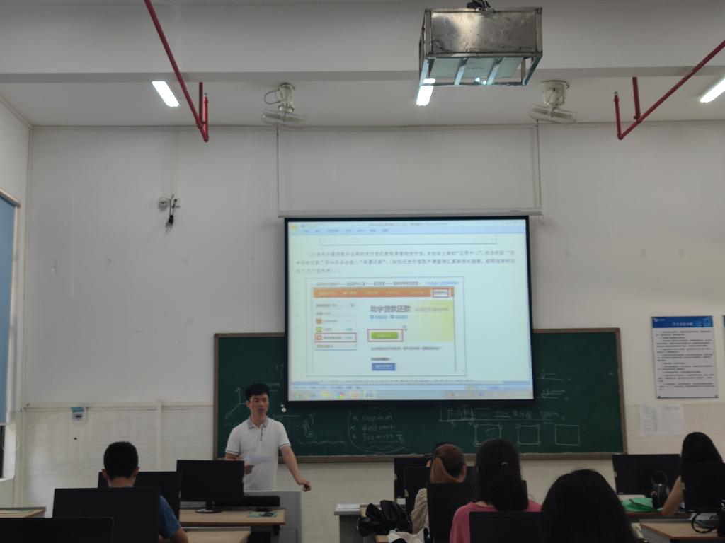 会上,辅导员严锡秋首先对今年毕业生贷款确认的相关工作做了通知与说明,就还款注意事项向同学们一一做了阐述。随后,分别从老员工征信知识、高校助学贷款还款流程、国家开发银行助学贷款支付宝还款使用等几个方面对同学们进行了宣传教育。辅导员严锡秋作还款动员讲话,他强调了老员工树立契约意识和诚信观念的重要性,希望毕业生们意识到按时按期还款是法律规定的义务,同时也是社会主义核心价值观的重要要求,必须严肃履行,为自己建立良好的信用记录,不愿意看到有同学因不能按时偿还贷款本息而进入征信黑名单。